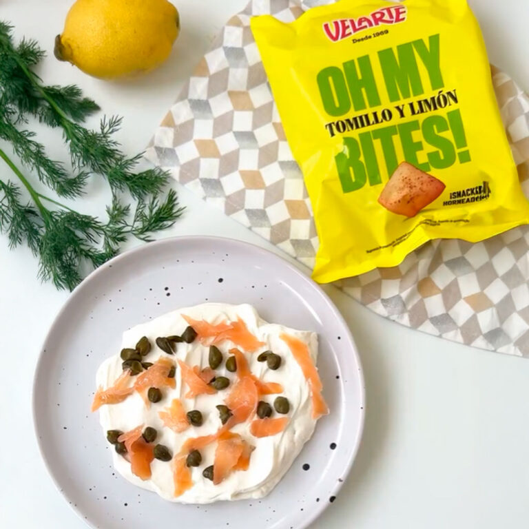 Accompanied by a delicate cream cheese appetizer with smoked salmon and capers. A fresh and sophisticated combination that transforms any moment into a gourmet experience.