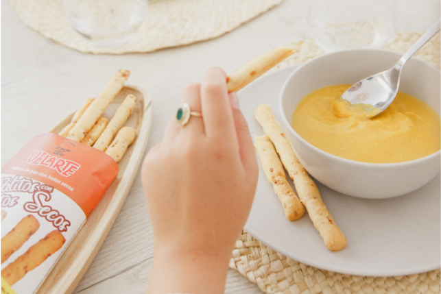 Los palitos de pan con frutos secos son el acompañante perfecto de tus cremas.