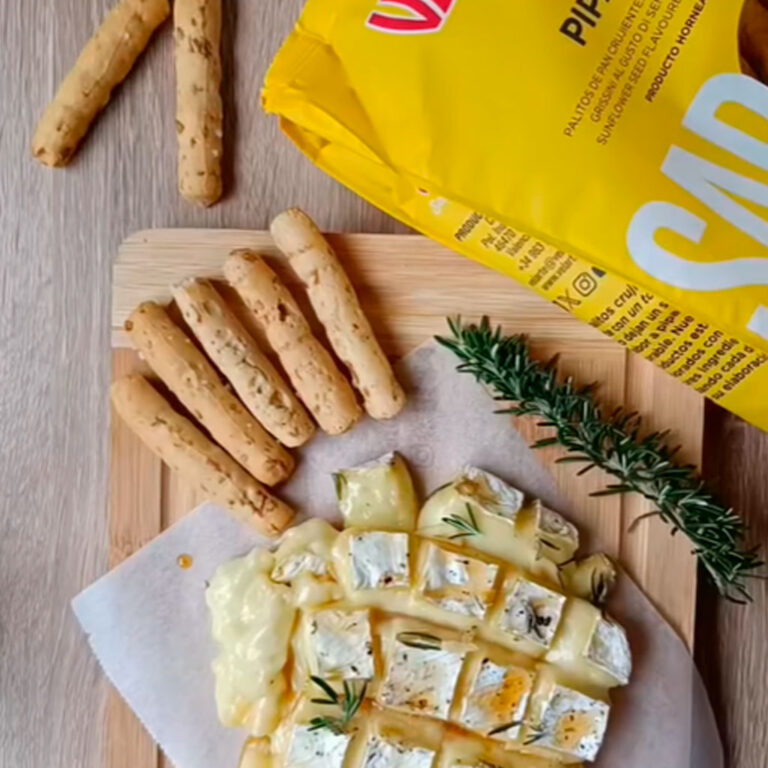 Una combinación irresistible: queso fundido con el toque aromático del romero, el dulzor de la miel y el sabor suave del ajo, todo acompañado por los crujientes palitos de pipas. Perfecto para compartir en una cena informal o como entrante especial.