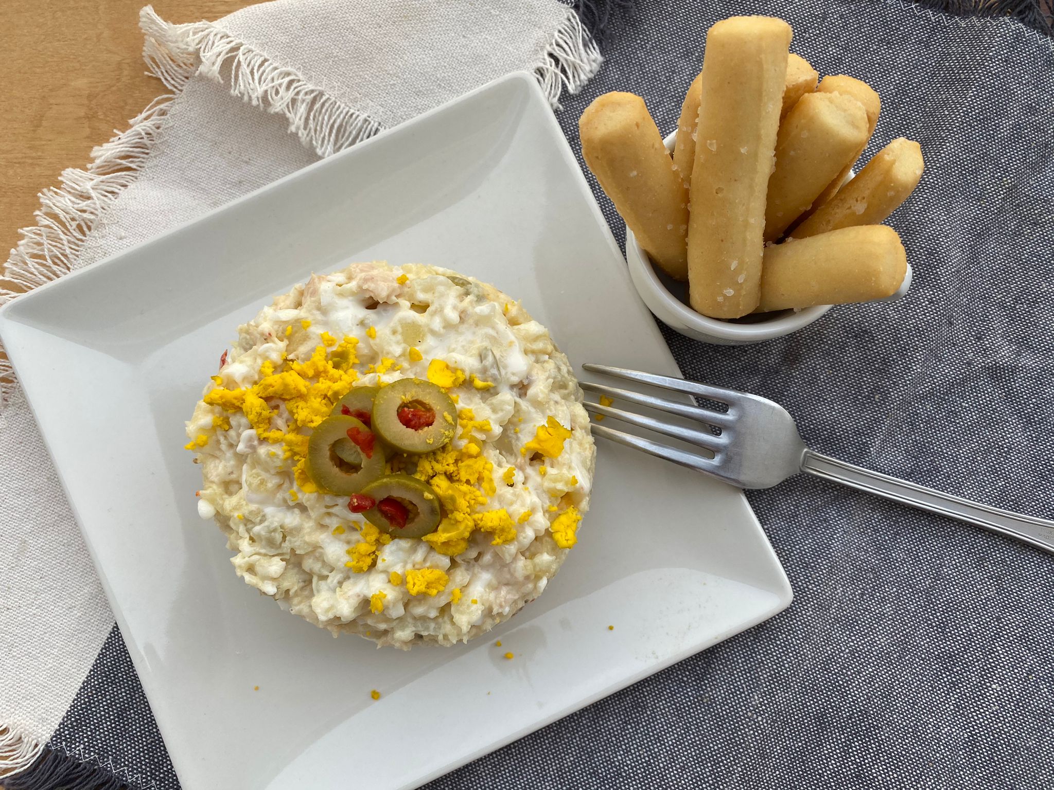 Acompaña esta ensaladilla con nuestros saladitos y convierte este plato en una delicia.
